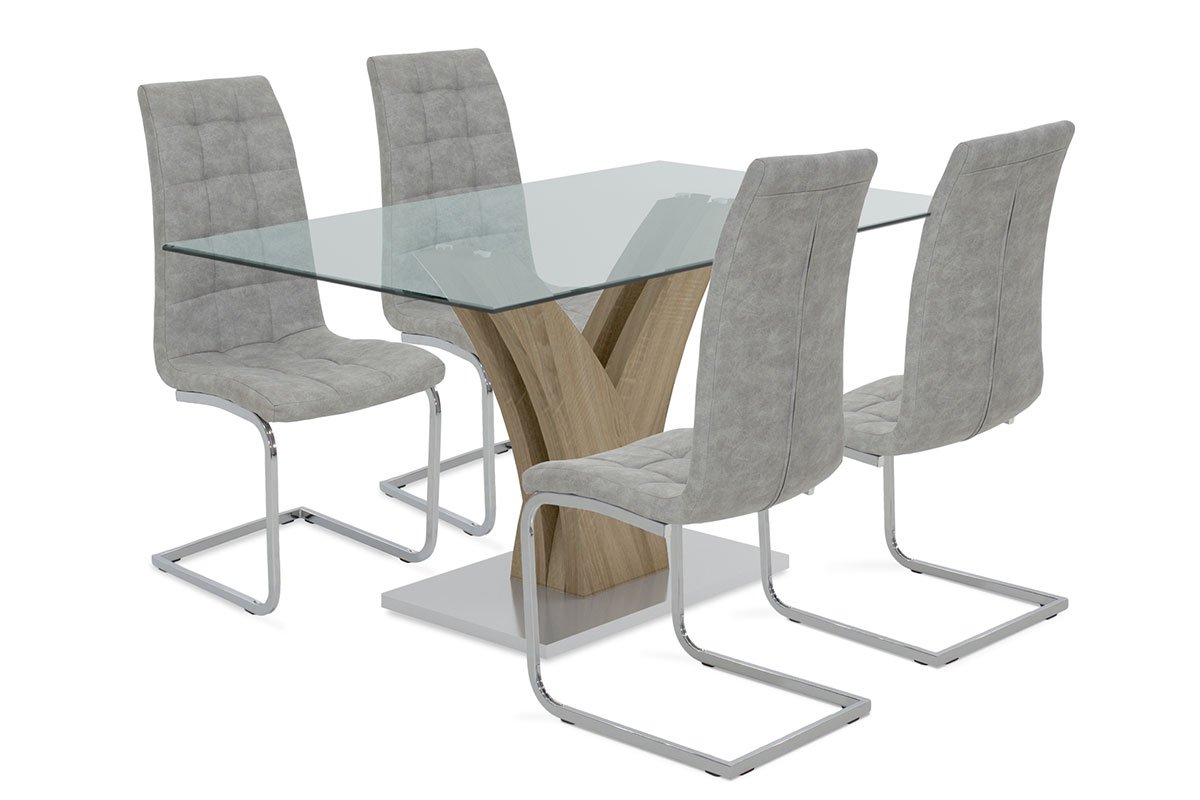 Dining set 5pcs glass surface-chair with antique grey 150x90x76