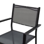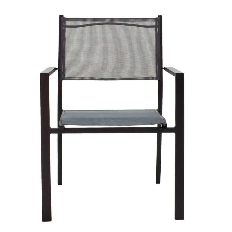 Specifications:* Frame made of extremely durable aluminum with resistance to wear and time.* Seat upholstery with excellent quality textilene fabric. Textilene is washable and resistant to external environmental conditions (sunlight, humidity).* Stackable seat: offers ease of transport and storage.* Available in black with textilene in anthracite shade Dimension:Length: 61 cm.Width: 56,5 cm.Height: 87,5 cm.Seat height: 42 cm.Comments:The product is delivered assembled in factory packaging.The color of the product may differ slightly from the photo display on your screen.
