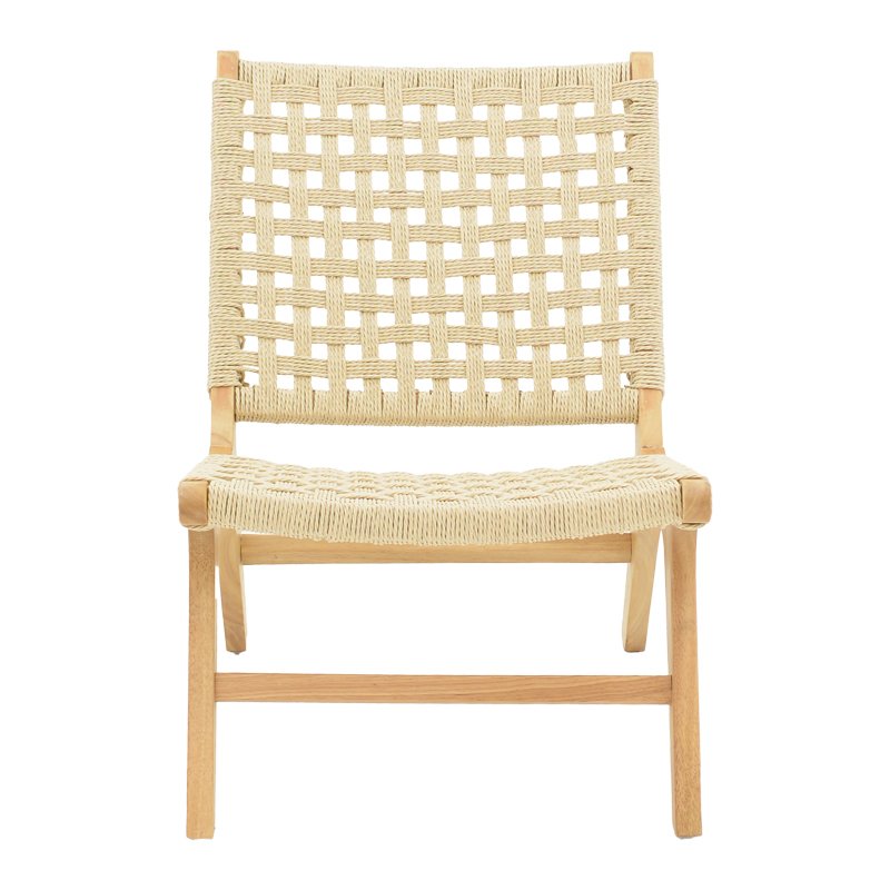 Made with modern durable materials, it offers you the ergonomics and quality of today. Also ideal for the home as it can upgrade the aesthetics of your dining room or living room.Specifications: Frame made of excellent quality rubberwood. Lining of base and back with synthetic rope that provides durability but also the possibility of easy cleaning. Available in natural color.Product dimensions: Length: 55 cm. Width: 80 cm. Height: 77 cm. Seat height: 39 cm.Material information: Rubberwood: Rubberwood is a popular material derived from the wood of the rubber tree (Hevea brasiliensis), which is widely used in the manufacture of furniture and other interior decoration items. It is wear resistant and easy to process. Due to its density, it is durable and strong, making it suitable for furniture making and structural applications. Synthetic Rope: Synthetic rope is a type of rope made from man-made fibers, instead of natural fibers such as cotton or wool. The most common synthetic fibers used in synthetic ropes are nylon, polyester and polypropylene.Maintenance instructions: Rubberwood: Wipe with a soft cloth to remove dust and dirt. Avoid exposing the material to moisture, as it can cause deformation or deterioration of the wood. To protect and preserve Rubberwood, you can use special wood finishing products that will help preserve its texture and shine. Synthetic rope: The cleanliness and maintenance of the rope depends on the material from which it is made. In general, ropes are washed with warm water and mild detergent. Synthetic fiber ropes are resistant to moisture and usually do not require special maintenance.Remarks: The product is delivered in factory packaging. The color shade of the product may differ slightly from the photographic representation on your screen.