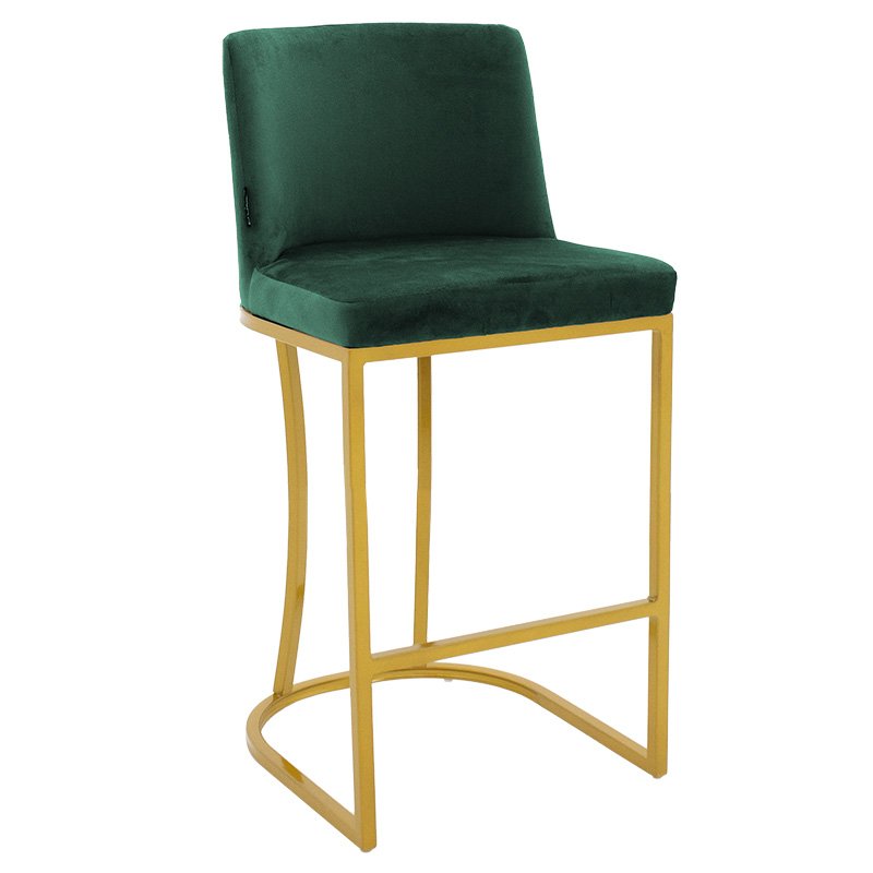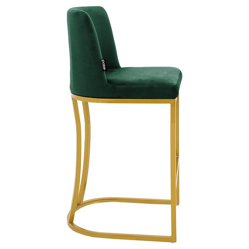 Impartial I модел бар стол със средна височина, метален златисто-кадифеен, тъмнозелен. Инвестирайте в качество, цвят и естетика, като обновите пространството си с бар столове Impartial I. Луксозна конструкция, която ще разкраси личното ви пространство. Спецификации:* Облегалката и седалката са от едно цяло, облицовани с високоустойчива на износване пяна. Обгръща гръбначния стълб, като същевременно поддържа кръста с извития си дизайн.* Опора в метална рамка с отлично качество и издръжливост в златист цвят.* Има специална поставка за крака.* Тапицерия с несравнимо качествен тъмнозелен кадифе.* Краищата на опорните крака имат пластмасови капаци, за да предпазят пода от нежелани повреди. Размери на продукта: Дължина: 48 см. Ширина: 46 см. Височина: 95 см. Височина на седалката: 68 см. Дълбочина на седалката: 41 см. Височина на облегалката: 32 см. Забележки: Продуктът се доставя несглобен, във фабрична опаковка и с подробно ръководство за монтаж. Цветът на продукта може леко да се различава от фотографското му представяне на вашия екран.