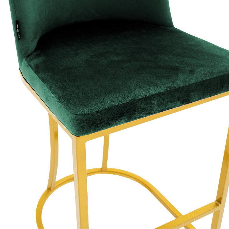 Бар стол средно висок метален със златни крака - кадифено тъмнозелен