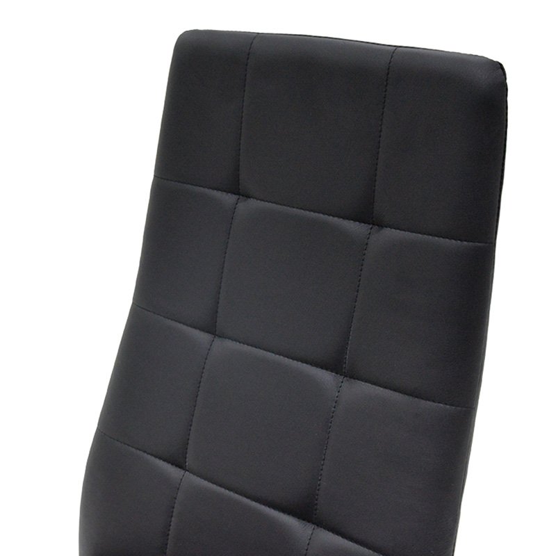 Click Here to download the Product Assembly Instructions.Cube chair modeliny PU black-chrome legThe classic quilted lines that make up this seat exude luxury, elegance and high aesthetics.A model designed with ergonomics, durability and comfort in the seat.Ideal for renewing the decoration of the living room, the dining room. Specifications:* Back and seat made of a reinforced frame and covered with high quality PU artificial leather that provides durability but also the possibility of easy cleaning. It is offered in black.* The back design follows the spine, supporting the waist with its modern slightly curved shape.* The back and seat have quilted reinforced seams that add a touch of luxury to the final set.* Support in a chrome-plated metal frame that ends in 4 reinforced legs, of excellent quality and resistance, both in weight and time.* The ends of the legs have protective plastic covers to protect the floor from unwanted damage.Product dimensions:Length: 41 cmWidth: 46 cmHeight: 97 cmSeat height: 47 cmRemarks:The product is delivered unassembled in its factory packaging and is accompanied by a detailed assembly guide.The color shade of the product may differ slightly from its photographic representation on your screen.