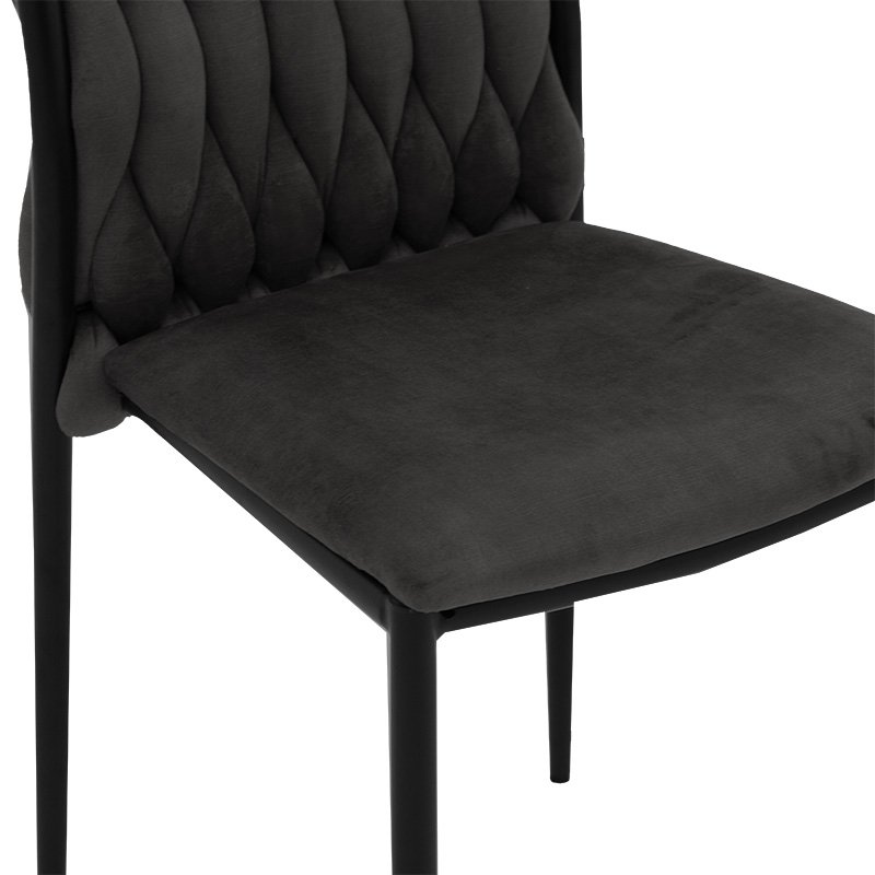 Стол Romany модел кадифе антрацит-черен кракСтолът Romany е тук, за да придаде усещане за лукс на вашето пространство със своя безупречен дизайн. Стол, който ще подчертае вашия стил на обзавеждане със своя специален и елегантен дизайн.Спецификации:* Стабилна метална рамка с отлично качество, устойчива на износване от теглото и времето.* Тапицерия с висококачествен и изключително издръжлив кадифе в антрацитен цвят* Дизайнът на облегалката е с плетен плат.* Опора е осъществена върху четири подсилени метални крака в черно.Размери на продукта:Дължина: 42 смШирина: 46 смВисочина: 89 смВисочина на седалката: 46 смВисочина на облегалката: 43 смДълбочина на седалката: 40 смЗабележки:Продуктът се доставя във фабрична опаковка. Цветът на продукта може леко да се различава от фотографското му представяне на вашия екран.