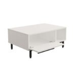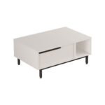 Frixton modeliny melamine coffee table white-black 90x60x37.5cmAre you looking for a practical coffee table with a modern design?Frixton is here for you. A piece of furniture of high quality, construction and functionality, essential for the home or office.Specifications:* Made of chipboard with high quality melamine veneer in white color.* It has an auxiliary space for closed storage of your everyday items and right next to it a small shelf for supporting books or other accessories, and it can also be used to create decorative compositions.* Support on highly durable polypropylene legs.* Offered in the color combination of white-black.Product Dimension:Length: 90 cmWidth: 60 cmHeight: 37.5 cmLeg height: 12 cmRemarks:The product is delivered unassembled, in factory packaging and with a detailed assembly guide.The color shade of the product may differ slightly from its photographic representation on your screen.