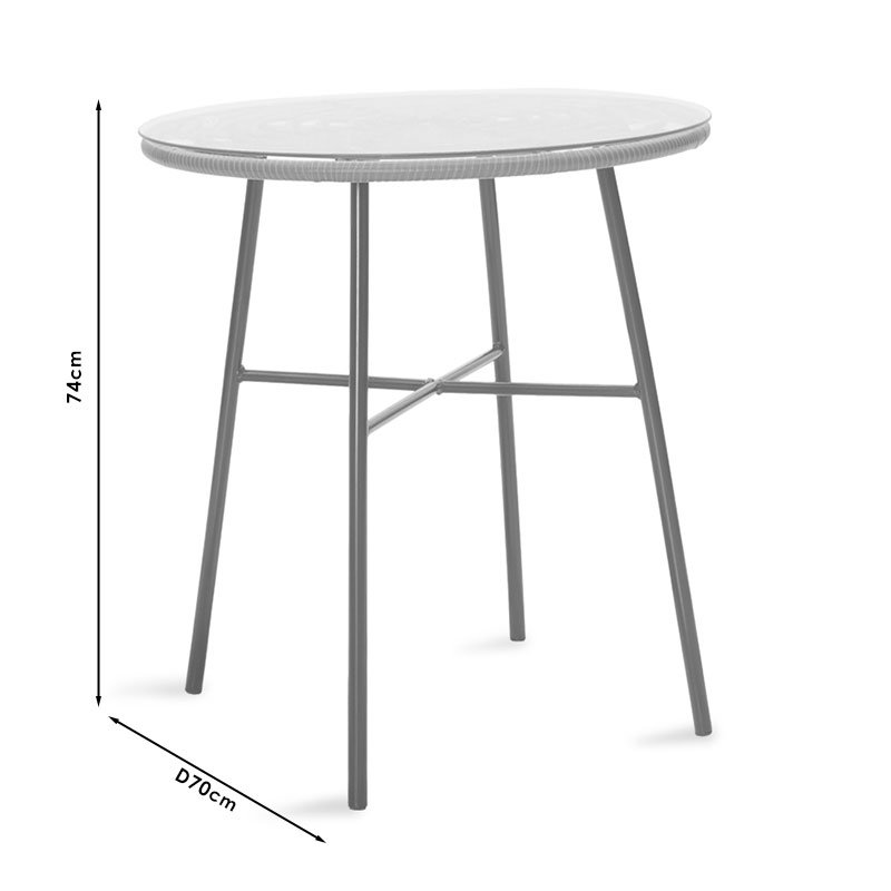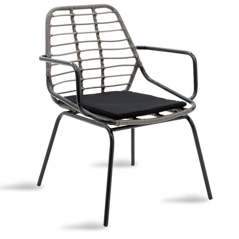 Комплектът включва два фотьойла и маса. Технически характеристики: Стабилна рамка, изработена от висококачествен метал (крака D50 мм) с устойчивост на натоварване и износване. Основната повърхност е изработена от PE ратан. PE ратанът е вид екологичен синтетичен ратан, рециклируем и по-издръжлив от другите видове. Столът включва възглавница за седалката 2 см в черен цвят, която има цип. Масата е от закалено стъкло 6 мм - прозрачно със заоблени ръбове, за да се избегнат наранявания. Висока издръжливост: подходяща за употреба на открито, изложена на атмосферни влияния и влага. Предлага се в цвят: сиво - черен. Размери на продукта: Размери на масата: Дължина: 70 см. Дълбочина: 70 см. Височина: 74 см. Размери на фотьойла: Дължина: 63 см. Ширина: 60 см. Височина: 82 см. Височина на седалката: 40 см. Информация за материала: PE ратан: PE ратанът, популярен материал, който имитира естествен ратан, се използва често в производството на мебели и аксесоари. Изработен от полиетилен, издръжлива синтетична полимерна смола, PE ратанът е устойчив на атмосферни влияния и не се разгражда от излагане на слънце или дъжд. Той запазва цвета си и не избледнява, което го прави отличен избор както за вътрешна, така и за външна употреба. Освен това, PE ратанът е екологичен, допринасяйки за устойчиви практики в производството и дълготрайността на продуктите. Закалено стъкло – Безопасно стъкло: Закаленото стъкло, известно още като закалено или термично обработено стъкло, е вид безопасно стъкло, което е преминало през специална обработка, за да се увеличи здравината му в сравнение с обикновеното стъкло. Термичната обработка включва нагряване на стъклото до висока температура и след това бързото му охлаждане. Това създава напрежение на натиск върху повърхността на стъклото и напрежение на опън вътре, което го прави по-устойчиво на удари, термични шокове и надрасквания. То е около 5 пъти по-устойчиво на удар от обикновеното стъкло. Значително предимство е, че в случай на счупване, закаленото стъкло се разбива на малки, тъпи фрагменти, намалявайки риска от сериозни наранявания. Използва се в маси, бюра, мебели за телевизори и др. Метал: Металът се използва широко в производството на мебели, предлагайки няколко предимства пред други материали. Изключително устойчив е на износване, идеален за мебели, предназначени за ежедневна употреба в тежка среда. Поддържа перфектно формата и структурата си, осигурявайки стабилност и дълготрайност. Освен споменатите по-горе свойства, металът може да има и други характеристики, като антимикробно действие (мед) или свръхпроводимост (молибден). Плат за възглавници: Платът е универсален материал, изработен чрез тъкане, плетене, шиене или свързване на влакна. Тези влакна могат да бъдат естествени, като памук, вълна или коприна, или синтетични, като полиестер или найлон. Преплитането на влакната създава мрежа, която придава на плата нейните свойства, като здравина, мекота, дишане и еластичност. Има безброй разновидности на тъкани, всяка със свои уникални характеристики и приложения. Инструкции за поддръжка: PE ратан: Този материал е лесен за поддръжка и почистване. Просто го измийте с вода и мек сапун. Използвайте мека четка или кърпа, за да изтъркате внимателно замърсявания и отломки. Изплакнете обилно с чиста вода и го оставете да изсъхне на въздух. Редовното