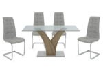 Комплект за хранене 5 части стъклен плот-столове с антично сиво 150x90x76