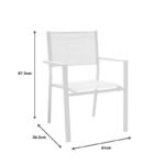 Комплектът включва шест фотьойла и маса. Технически характеристики на масата: Изключително здрава алуминиева рамка с устойчивост на износване и време. Основно плотът на масата е изработен от висококачествен шперплат – шперплат, който осигурява издръжливост, но и устойчивост на условията на външната среда (слънчева радиация, влажност). Предлага се в бяло – естествен цвят. Размери на масата: Дължина: 180 см. Ширина: 80 см. Височина: 72,5 см. Технически характеристики на фотьойла: Изключително здрава алуминиева рамка с устойчивост на износване и време. Калъф на седалката с висококачествен текстиленов плат. Текстиленът е перещ се и устойчив на условията на външната среда (слънчева радиация, влажност). Стифираща се седалка: предлага лесно транспортиране и съхранение. Предлага се в бяло. Размери на фотьойла: Дължина: 61 см. Ширина: 56,5 см. Височина: 87,5 см. Височина на седалката: 42 см. Информация за материала: Алуминий: Материалът „ALU“ се отнася до алуминий, който е третият най-разпространен елемент на земята и първият най-разпространен метал. Алуминият създава защитен окислителен слой при контакт с въздуха, предпазвайки от корозия, като същевременно е напълно рециклируем, без да губи свойствата си, което го прави много устойчив материал. Шперплат: Шперплатът е дървоподобен композитен материал, изработен от рециклирани пластмаси. Често се използва за направата на градински мебели като маси, столове, шезлонги и пейки. Изключително устойчив е на атмосферни влияния. Текстилен: Текстиленът е изключително издръжлив материал, широко използван в градинските мебели и аксесоари. Състои се от полиестерни влакна, покрити с PVC (поливинилхлорид), създавайки материал, който съчетава издръжливост, устойчивост на атмосферни влияния и гъвкава текстура. Този материал позволява на въздуха да преминава, което помага за поддържане на усещане за хлад по време на употреба. Инструкции за поддръжка: Алуминий: Използвайте влажна микрофибърна кърпа, напоена с вода. Ако алуминият има много остатъци, като ръжда или петна, използвайте мек препарат или почистващ препарат, за да ги отстраните. Шперплат: Започнете с отстраняване на прах и отломки от повърхността на шперплата с мека кърпа или... четка. Можете също да използвате прахосмукачка с мека четка за по-добри резултати. Ако е необходимо основно почистване, навлажнете мека кърпа с вода и мек препарат или сапун. Ако шперплатът се използва на открито или в зони с висока влажност, нанесете подходящо покритие или покритие, за да предпазите повърхността от по-нататъшни повреди. Текстилен: Текстиленът се почиства лесно с обикновен сапун и вода. Не изисква специална поддръжка или грижи и може да остане в добро състояние с минимални грижи. Забележки: Продуктът се доставя във фабрична опаковка. Цветът на продукта може леко да се различава от фотографското му представяне на вашия екран.