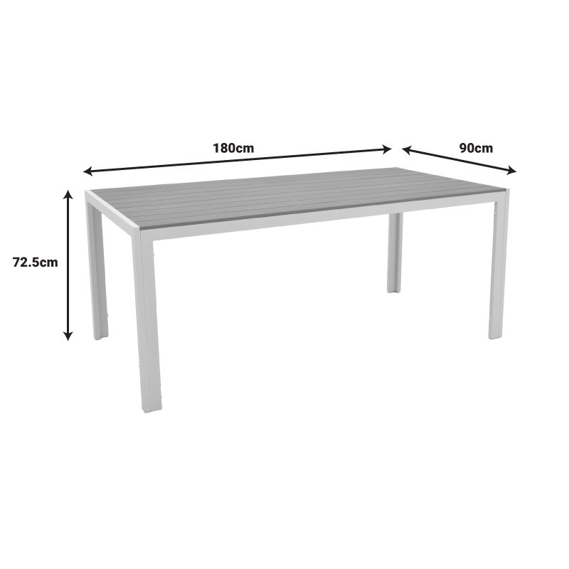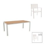 Трапезна маса Комплект от 7 бели алуминиеви и шперплат в естествен цвят 180x90x72.5см