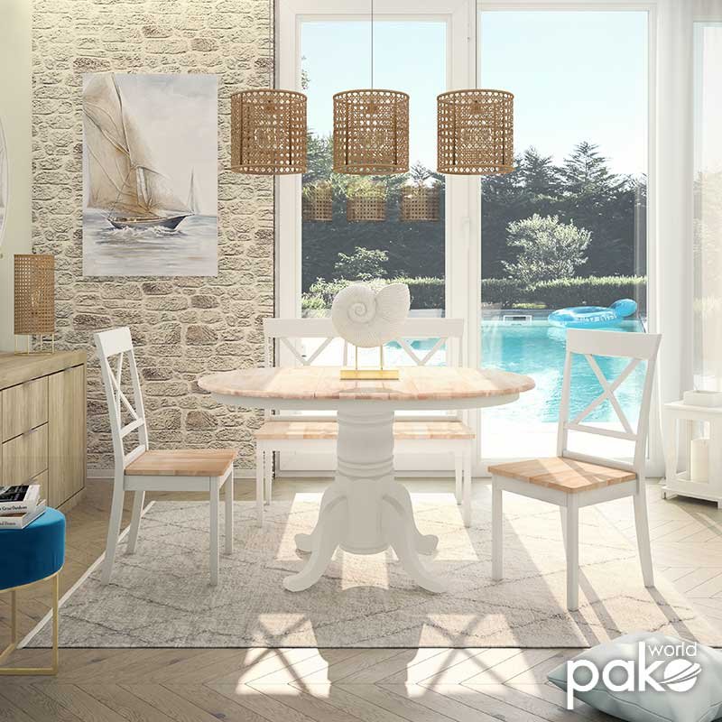 Трапезна маса разтегателна дърво-бяло-естествено D100(+38)x100x75см
