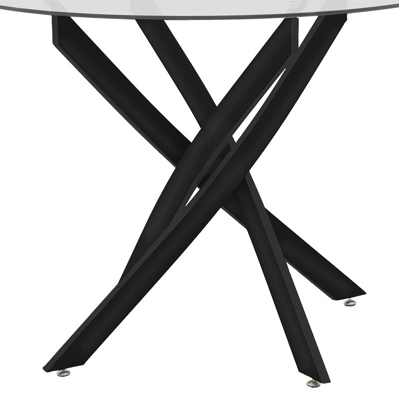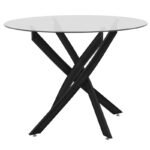 Modern, durable and stylish. Ideal for home as well as for your professional space.Technical Specifications: Surface made of 8 mm tempered glass of high quality and high resistance. In the event of an impact, the glass shatters into small pieces, without injuring the user. The corners of the surface are curved to prevent injuries. Support on reinforced black metal legs that offer excellent stability and wear resistance.Product Dimensions: Diameter: 100 cm. Height: 75 cm.Material Information: Tempered glass – Safety glass: Tempered glass, also known as toughened or thermally processed glass, is a type of safety glass that has undergone special treatment to increase its strength compared to ordinary glass. The thermal processing involves heating the glass to a high temperature and then rapidly cooling it. This creates a compression stress on the surface of the glass and a tensile stress inside, making it more resistant to impacts, thermal shocks, and scratches. It is about 5 times more impact-resistant than ordinary glass. A significant advantage is that in case of breakage, tempered glass shatters into small, blunt fragments, reducing the risk of serious injury. It is used in tables, desks, TV furniture, etc. Metal: Metal is widely used in furniture construction, offering several advantages over other materials. It is extremely resistant to wear, ideal for furniture intended for daily use in a demanding environment. It maintains its shape and structure perfectly, ensuring stability and longevity. Besides the properties mentioned above, metal can also have other characteristics, such as antimicrobial action (copper) or superconductivity (molybdenum).Maintenance Instructions: Tempered glass: Initially, use a soft damp cloth and a mild detergent or just water. Apply the cloth to the tempered glass and clean it with gentle circular motions. Avoid using excessive pressure and materials that may cause scratches. Metal: For any indoor metal, dusting or wiping with a damp cloth regularly is recommended. However, for outdoor metal furniture, follow these steps: For extended protection, apply protective cream, easily available in stores, to your metal furniture. If your furniture is processed and painted with powder-coating, it is very durable and can be cleaned easily with a damp cloth. If your metal furniture is not powder-coated, you need to be more careful and keep it away from water and humidity. You can cover them with special covers and, if possible, place them indoors during winter. If you notice rust, remove it with turpentine, then apply anti-rust varnish before painting the surface with oxidation-resistant paint. Remarks: The product is delivered unassembled, in factory packaging and with a detailed assembly guide. The color shade of the product may differ slightly from its photographic representation on your screen.”