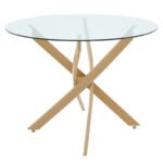 Modern, durable and stylish. Ideal for home as well as for your professional space.Technical Specifications: Surface made of 8 mm tempered glass of high quality and high resistance. In the event of an impact, the glass shatters into small pieces, without injuring the user. The corners of the surface are curved to prevent injuries. Support on reinforced metal legs in natural that offer excellent stability and wear resistance.Product Dimensions: Diameter: 100 cm. Height: 75 cm.Material Information: Tempered glass – Safety glass: Tempered glass, also known as toughened or thermally processed glass, is a type of safety glass that has undergone special treatment to increase its strength compared to ordinary glass. The thermal processing involves heating the glass to a high temperature and then rapidly cooling it. This creates a compression stress on the surface of the glass and a tensile stress inside, making it more resistant to impacts, thermal shocks, and scratches. It is about 5 times more impact-resistant than ordinary glass. A significant advantage is that in case of breakage, tempered glass shatters into small, blunt fragments, reducing the risk of serious injury. It is used in tables, desks, TV furniture, etc. Metal: Metal is widely used in furniture construction, offering several advantages over other materials. It is extremely resistant to wear, ideal for furniture intended for daily use in a demanding environment. It maintains its shape and structure perfectly, ensuring stability and longevity. Besides the properties mentioned above, metal can also have other characteristics, such as antimicrobial action (copper) or superconductivity (molybdenum).Maintenance Instructions: Tempered glass: Initially, use a soft damp cloth and a mild detergent or just water. Apply the cloth to the tempered glass and clean it with gentle circular motions. Avoid using excessive pressure and materials that may cause scratches. Metal: For any indoor metal, dusting or wiping with a damp cloth regularly is recommended. However, for outdoor metal furniture, follow these steps: For extended protection, apply protective cream, easily available in stores, to your metal furniture. If your furniture is processed and painted with powder-coating, it is very durable and can be cleaned easily with a damp cloth. If your metal furniture is not powder-coated, you need to be more careful and keep it away from water and humidity. You can cover them with special covers and, if possible, place them indoors during winter. If you notice rust, remove it with turpentine, then apply anti-rust varnish before painting the surface with oxidation-resistant paint. Remarks: The product is delivered unassembled, in factory packaging and with a detailed assembly guide. The color shade of the product may differ slightly from its photographic representation on your screen”