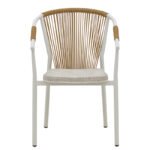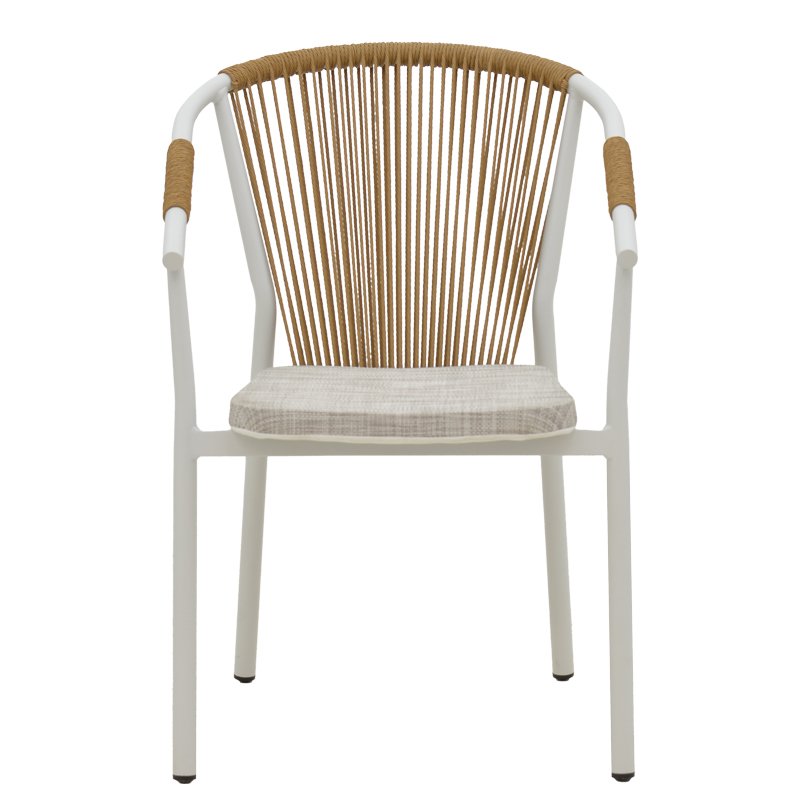 Искате ли издръжлив комплект за хранене за вашия балкон или градина, който естетически ще подобри пространството ви? Серията Kliton – Convince е идеална за вас, тъй като съчетава естетика с качествена изработка. Комплектът се състои от два фотьойла и маса. Технически характеристики на масата: Алуминиева конструкция. Предлага се в бяло. Размери на масата: Дължина: 80 см. Ширина: 80 см. Височина: 74 см. Технически характеристики на фотьойла: Стабилна рамка, изработена от висококачествен алуминий с устойчивост на напрежение и износване. Основното тяло на стола е изработено от висококачествена мрежеста материя и ратан. Основното свойство на ратана е неговата гъвкавост, тъй като може лесно да се плете и оформя. Освен това е издръжлив и устойчив на атмосферни влияния, което го прави идеален за допълнителни външни пространства. Мрежестата материя е вид материя, характеризираща се със своята отвореност, т.е. наличието на малки отвори или мрежи, които позволяват на въздуха и светлината да преминават. Алуминият създава защитен окислителен слой при контакт с въздуха, предпазвайки от корозия, като същевременно е напълно рециклируем, без да губи свойствата си, което го прави много устойчив материал. Седалка, изработена от текстилен. Текстиленът е изключително издръжлив материал, широко използван в градинските мебели и аксесоари. Състои се от полиестерни влакна, покрити с PVC (поливинилхлорид), създавайки материал, който съчетава издръжливост, устойчивост на атмосферни влияния и гъвкава текстура. Този материал позволява на въздуха да преминава, което спомага за поддържане на усещане за хлад по време на употреба. Краищата на краката имат защитни капаци. Предлага се в бяло-естествен цвят. Размери на фотьойла: Дължина: 56 см. Ширина: 63 см. Височина: 82 см. Височина на седалката: 44 см. Товароносимост: 120 кг. Забележки: Продуктът се доставя във фабрична опаковка. Цветът на продукта може леко да се различава от фотографското изображение на вашия екран.
