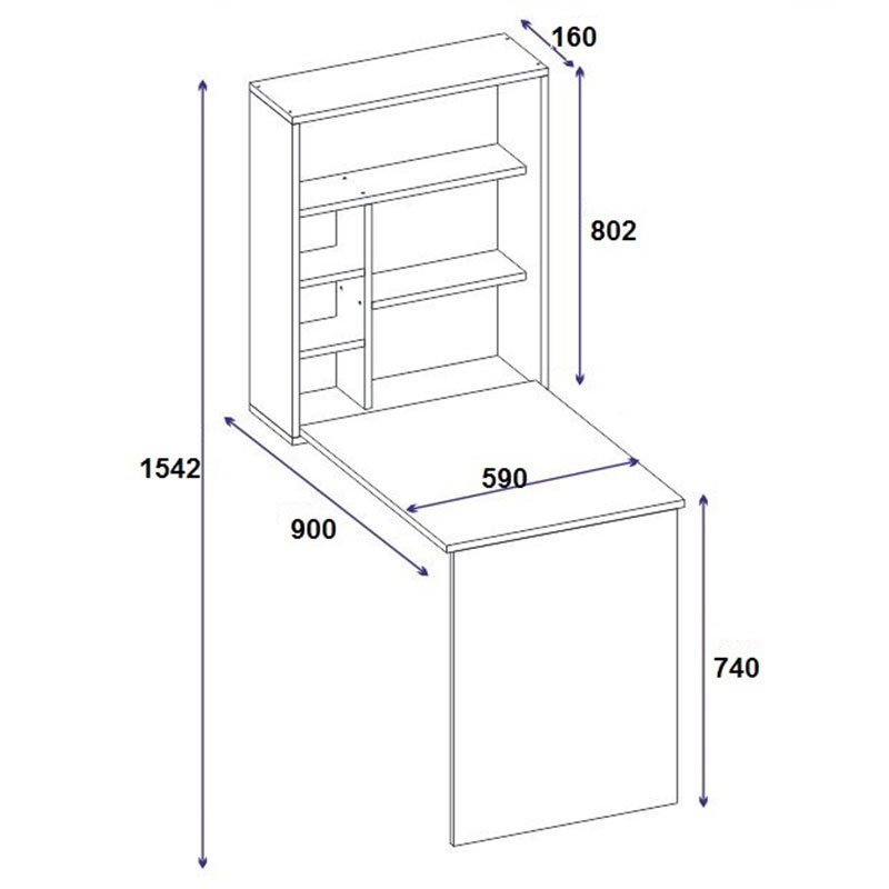 Сгъваемо стенно работно бюро бяло 63x90x154см