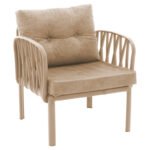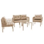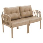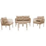 The ideal combination of quality and comfort turn it into a necessary accessory for every space.Specifications:* Made of high quality perforated polypropylene (PP).* Durability: Polypropylene is a material with great resistance to the conditions of the external environment (exposure to moisture, air, etc.). It can be easily cleaned with a damp cloth or running water, and it is an environmentally friendly recyclable material.* It has an enhanced UV sun protection filter for prolonged exposure to the sun and outdoor conditions.* Offered in cappucino frame and beige antique cushions* The cushions are zipped and the covers are removable.* The table has safety clear glass.Product dimensions:2-seat sofa: 129x68x72.5/82 cmTwo armchairs: 66x68x72.5/82 cmA table: 60x60x44 cm.Other dimensions:Seat height: 42 cmSeat depth: 68 cm / 40 with cushionThickness of foam seat: 8 cmThickness of foam back cushion: 16 cmRemarks:The product is delivered in its factory packaging. The color shade of the product may differ slightly from its photographic representation on your screen