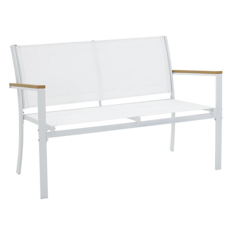 Градински комплект Jacie модели от 4 части метал бяло-текстил бяло Търсите ли впечатляващ и удобен комплект за хол, който елегантно ще обнови балкона или градината ви? Ако е така, тогава този модел е вашият идеален избор, с модерен дизайн, който ще се открои. Комплектът включва: Два (2) фотьойла Един (1) двуместен диван Една (1) маса Спецификации: Рамка, изработена от метал, облегалка и седалка от текстил. Фотьойлите и диванът са с дървени подлакътници. Повърхността на масата е изработена от стъкло. Предлага се в бял цвят. Размери на фотьойла: Дължина: 58 см Дълбочина: 60 см Височина: 74,5 см Височина на седалката: 38 см Дълбочина на седалката: 48 см Размери на дивана: Дължина: 110 см Дълбочина: 60 см Височина: 74,5 см Височина на седалката: 38 см Дълбочина на седалката: 48 см Размери на масата: Дължина: 85 см Дълбочина: 45 см Височина: 38 см Коментари: Продуктът се доставя във фабричната си опаковка и с подробно ръководство за монтаж. Цветът на продукта може леко да се различава от начина, по който е показан на вашия екран.