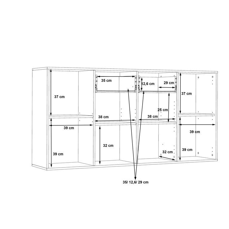 Спецификации: Изработен от ПДЧ, покрит с висококачествен меламин, устойчив на натоварване и време. Предлага се в бяло. Разполага с четири шкафа и две чекмеджета за съхранение на любимите ви дрехи и аксесоари. Дръжки, изработени от качествен PP. Размери на продукта: Дължина: 162,3 см. Ширина: 34,2 см. Височина: 81,7 см. Повърхностно съпротивление на теглото: 20 кг. Товароносимост на рафтовете: 15 кг. Товароносимост на чекмеджетата: 5 кг. Информация за материала: ПДЧ: ПДЧ, известно като ПДЧ, е композитен дървесен материал, изработен от малки парчета дърво, обикновено бор или смърч, слепени заедно под високо налягане и температура с помощта на смоли. Широко се използва в производството на мебели, интериорни повърхности и структурни приложения. Изработен е от рециклирани материали и е устойчив на огъване, износване и други естествени натоварвания. Меламин: LPB Melamine (Low Pressure Melamine) е синтетичен материал, широко използван в повърхностната обработка на ПДЧ при производството на мебели и повърхности, поради своята издръжливост и лесна поддръжка. Прилага се върху основи като MDF (плочи от дървесни влакна със средна плътност) или OSB шперплат за получаване на издръжливи повърхности. PP – Полипропилен: Полипропиленът (PP) е термопластичен материал, широко използван в много области благодарение на отличните си свойства. Въпреки че е лек, той има висока устойчивост на удар, което го прави подходящ за приложения, които изискват устойчивост на удар и износване. Запазва свойствата си дори под въздействието на влажност, което го прави подходящ за приложения в среди с висока влажност. Инструкции за поддръжка: ПДЧ: За почистване на ПДЧ можете да използвате мека кърпа, леко навлажнена с вода и мек препарат. Избягвайте прекомерната употреба на вода и поддържайте повърхността суха след почистване. Меламин: Един от най-известните материали в областта на мебелите е меламинът. За да премахнете петна от повърхността, използвайте мека кърпа с хладка вода и мек сапун. Внимателно избършете повърхността, докато петното се отстрани. Меламинът е чувствителен към влага, така че е важно да се предпази от вода. PP-полипропилен: За ежедневно почистване на полипропилен използвайте мека кърпа или гъба, леко навлажнена с мек препарат и топла вода. Разстелете кърпата върху повърхността ѝ и почистете, като прилагате лек натиск. Забележки: Продуктът се доставя във фабрична опаковка. Цветът на продукта може леко да се различава от фотографското му изображение на вашия екран.