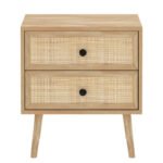 Nightstand Oslo modeliny sonoma 50x39x55cmThis nightstand has a classic design and is a perfect choice if the minimal style is your taste.Technical Specifications: Made of high-quality chipboard with paper wood coating The front part of the construction is uniformly covered with highly resistant rattan. Support on four legs made of high-strength wood. Includes 2 drawers ideal for storing everyday items. Offered in sonoma color.Product Dimensions: Length: 50 cm. Width: 39 cm. Height: 55 cm. Leg height: 16cm.Material Information: Chipboard: Chipboard, also known as particleboard, is a composite wood material made from small wood pieces, usually pine or fir, bonded together under high pressure and temperature using resins. Widely used in furniture construction, interior surfaces, and structural applications. Manufactured from recycled materials, it is resistant to bends, abrasions, and other physical stresses. Natural Rattan: Natural rattan is a material derived from the rattan plant, which belongs to the palm family. It is extremely flexible and durable, capable of withstanding use and weight without easily breaking. Rattan has a natural beauty and warm texture, making it popular in both indoor and outdoor furniture and decor. LPL Decor Paper: Low-Pressure Laminate (LPL) Decor Paper is a material widely used for surface decoration, such as furniture, doors, floors, and other interior surfaces. It is a type of decorative paper impregnated with resins to become durable and acquire glossiness. It is then applied to substrates such as MDF or plywood and processed under low pressure and heat to produce products such as furniture surfaces. Available in a wide variety of colors, patterns, and textures that can replicate natural materials such as wood, marble, and granite.Maintenance Instructions: Chipboard: To clean chipboard, use a soft cloth lightly dampened with water and mild detergent. Avoid excessive use of water and keep the surface dry after cleaning. Natural Rattan: For maintenance, it is recommended to clean with mild soap and water using a sponge. Avoid excessive exposure to sunlight, as this may cause discoloration or damage. LPL Decor Paper: Surfaces coated with LPL are easy to clean with mild detergents and a soft cloth. Avoid contact with liquid elements.Remarks: The product is delivered in factory packaging and with a detailed assembly guide. The color shade of the product may vary slightly from the photographic representation on your screen.