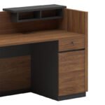 Click Here to download the Product Assembly Instructions.Reception desk Oscar modeliny walnut-charcoal 180x65x76cmAre you looking for a reception desk that radiates prestige, power and superiority? If so, then the Oscar series is what you need to complete your business image.Reception desk with built-in cupboard and drawer, ideal for two workplaces, in the impressive walnut-anthracite colour. Made of high quality materials and according to today’s ergonomic requirements.Technical Specifications: Main office: Surface made of high quality chipboard with melamine coating. Includes: Built-in drawer and cabinet Combines harmoniously with the rest of the series: Desks, bookcases, conference tables and cupboards.Product Dimensions: Length: 180 cm. Width: 65 cm. Height: 76 cm.Material Information: Chipboard: Chipboard is a composite wood material made from small wood chips, usually pine or fir, glued together under high pressure and temperature using resins. It is widely used in furniture construction, interior surfaces, and structural applications. Made from recycled materials, it is resistant to warping, abrasion, and other physical stresses. Melamine (LPB): LPB (Low Pressure Melamine) is a synthetic material widely used for surface treatment of particle board in furniture and surface construction due to its durability and ease of maintenance. It is applied to substrates such as MDF (Medium-density fiberboard) or OSB plywood to produce durable surfaces.Maintenance Instructions: Chipboard: Clean with a soft cloth slightly dampened with water and mild detergent. Avoid excessive use of water and keep the surface dry after cleaning. Melamine (LPB): To remove stains from the surface, use a soft cloth with lukewarm water and mild soap. Gently wipe the surface until the stain is removed. Melamine is sensitive to moisture, so it is important to protect it from water.Remarks: The product is delivered unassembled in its factory packaging with a detailed assembly guide. The color shade of the product may slightly differ from its photographic representation on your screen.