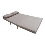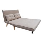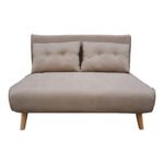 Разтегателен диван двуместен бежов плат и крак от естествено дърво 117x80x81см