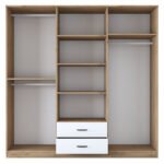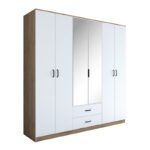 5x210 см. Любител ли сте на класиката? Мислите ли, че винаги имате нужда от допълнително пространство? И имате ли нужда от голям гардероб, за да организирате дрехи и аксесоари? Ако е така, тогава серията Wakro е за вас. Квадратният дизайн с изчистени линии, изработката от качествени материали и големите пространства за съхранение правят тази мебел лесна за употреба и задължителна за всяко пространство. Спецификации:* Изработена от висококачествено ПДЧ с меламиново покритие, устойчиво на натоварване, износване и време. е вид повърхност, изработена от ПДЧ, което е новоизпечена дървесина, произведена от нарязана дървесина, синтетични материали и синтетична смола. Меламинният фурнир е гладка повърхност, покрита със слой меламин, който е вид твърда пластмаса.* Има отварящи се крила и две чекмеджета в долната част за затворено съхранение на дрехи и аксесоари.* Съдържа огледало на външната повърхност.* Предлага се в цвят бял орех. Размери на продукта: Дължина: 210 см. Ширина: 51,5 см. Височина: 210 см. Забележки: Продуктът се доставя във фабрична опаковка и с подробно ръководство за монтаж. Цветът на продукта може леко да се различава от фотографското му представяне на вашия екран.