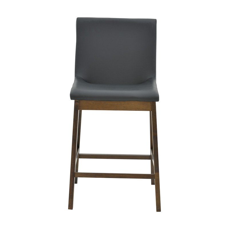 Bar stool Siera modeliny black faux leather – walnut rubberwood legs 45x58x95cm.Are you looking for a bar stool to decorate your kitchen or living room bar? If yes, then Siera is your best choice. It is a bar stool that is the pinnacle of innovative industrial design, harmoniously combining today’s durable materials with luxury and ergonomics. Suitable for any modern home and business space.Technical specifications: Backrest and seat: Made from highly durable and wear-resistant PU leather in black. Support: Four high-strength wooden legs in walnut color.Product dimensions: Length: 45 cm Width: 58 cm Height: 95 cm Seat height: 61 cm Seat depth: 40 cm Backrest height: 40 cm Footrest height (from ground): 17 cm Footrest thickness: 3 cmMaterial information: PU Leather: PU leather is an imitation leather that typically refers to the polymer polyurethane, a material widely used in many fields due to its excellent properties. It has satisfactory strength, is easy to clean, waterproof, does not deform, and is environmentally friendly. Rubberwood: Rubberwood is a popular material derived from the wood of the rubber tree (Hevea brasiliensis), widely used in furniture making and other interior decor items. It is resistant to wear and easy to work with. Due to its density, it is durable and strong, making it suitable for furniture construction and structural applications.Maintenance instructions: PU Leather: Use a soft cloth to remove any dust from the surface. For stains, use lukewarm water and mild soap to wipe the area. Always dry the surface afterward with a dry cloth to prevent water marks. Rubberwood: Wipe with a soft cloth to remove dust and dirt. Avoid exposing the material to moisture, as it can cause warping or deterioration of the wood. For protection and maintenance of rubberwood, use special wood finishing products that help maintain its texture and shine.Remarks: The product is delivered unassembled in factory packaging with a detailed assembly guide. The color shade of the product may slightly differ from its photographic depiction on your screen.