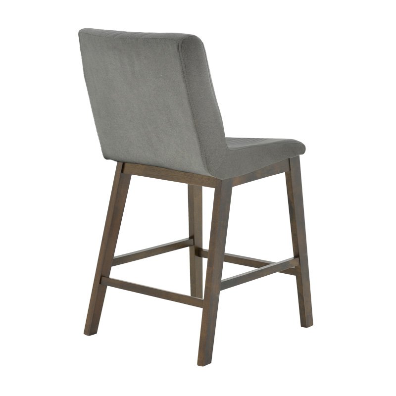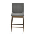 Bar stool Siera modeliny anthracite fabric – walnut rubberwood legs 45x58x95cm.Are you looking for a bar stool to decorate your kitchen or living room bar? If yes, then Siera is your best choice. It is a bar stool that is the pinnacle of innovative industrial design, harmoniously combining today’s durable materials with luxury and ergonomics. Suitable for any modern home and business space.Technical specifications: Backrest and seat: Made from high-durability, wear-resistant fabric in anthracite color. Support: Four high-strength wooden legs in walnut color.Product dimensions: Length: 45 cm Width: 58 cm Height: 95 cm Seat height: 61 cm Seat depth: 40 cm Backrest height: 40 cm Footrest height (from ground): 17 cm Footrest thickness: 3 cmMaterial information: Fabric: Fabric is a versatile material made by weaving, knitting, stitching, or bonding fibers. These fibers can be natural, like cotton, wool, or silk, or synthetic, like polyester or nylon. The weaving of the fibers creates a network that gives the fabric its properties, such as strength, softness, breathability, and elasticity. There are countless varieties of fabrics, each with its unique characteristics and uses. Rubberwood: Rubberwood is a popular material derived from the wood of the rubber tree (Hevea brasiliensis), widely used in furniture making and other interior decor items. It is resistant to wear and easy to work with. Due to its density, it is durable and strong, making it suitable for furniture construction and structural applications.Maintenance instructions: Fabric: The maintenance of fabric depends on various factors, such as the type of fiber, fabric construction, and usage. Use a mild detergent suitable for the type of fabric. Avoid using bleach or whiteners, as they can damage the fibers. Rubberwood: Wipe it with a soft cloth to remove dust and dirt. Avoid exposing the material to moisture, as it can cause warping or deterioration of the wood. For protection and maintenance of rubberwood, you can use special wood finishing products that help maintain its texture and shine.Remarks: The product is delivered unassembled, in factory packaging with a detailed assembly guide. The color shade of the product may slightly differ from its photographic depiction on your screen.