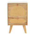Are you looking for a bedside table that combines classic style with boho touches? If so, then Finian is for you. Capable of decorating your bedroom and renewing your space.Specifications:  Construction of reinforced wood of excellent quality with great resistance to wear, use and time.  Support on four legs made of highly durable wood.  It has two drawers for closed storage of items.  Offered in natural color.Product dimensions: Length: 40 cm Width: 35 cm Height: 59 cmRemarks: The product is delivered in factory packaging. The color shade of the product may differ slightly from its photographic representation on your screen.