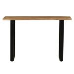 Carver console modeliny solid acacia wood 3.5 cm walnut-leg black 120x40x76cmAre you looking for a natural wood console that impresses with its clean lines, ideal for any room in your home? If so then the Carver console is your best choice. The surface follows the irregular shape of natural wood.Technical Specifications: Seat made of acacia wood with resistance to wear and time. Acacia wood is kind to the environment, particularly resistant to water and humidity, high density and hardness which makes it extremely durable in furniture making. The life of this wood can be extended by applying a protective varnish and its cleanliness is done by applying a wet cloth. Each piece is also a work of art, as it is unique due to the particular unevenness of the tree trunk. It can bring or create cracks over time (due to the contraction and expansion of solid wood which is a living organism) and which make it even more original and special. During the production process, the existing cracks are treated and made uniform with construction material from the same wood. Therefore, each piece may have slight variations in color tonality and dimensions due to the naturalness of the tree trunk. All of the above are completely natural for solid wood and do not constitute a product defect. Support base: Metal legs in a P shape in black color. Offered in walnut-black color. Product Dimensions: Length: 120 cm. Width: 40 cm. Height: 76 cm. Material Information: Acacia Wood: Acacia wood is hard and resistant to wear, making it suitable for furniture and outdoor use. It is known for its durability, the beauty of its natural color, and its resistance. It is widely used in the construction of furniture, flooring, work surfaces, and outdoor structures like gardens and balconies. Metal: Metal is widely used in furniture construction, offering several advantages over other materials. It is extremely resistant to wear, ideal for furniture intended for daily use in a demanding environment. It maintains its shape and structure perfectly, ensuring stability and longevity. Besides the properties mentioned above, metal can also have other characteristics, such as antimicrobial action (copper) or superconductivity (molybdenum).Maintenance Instructions: Acacia Wood: While naturally durable, proper maintenance can prolong its lifespan and maintain its beautiful appearance. Clean the wood with a soft cloth and mild soap and water. Avoid using strong chemicals or detergents as these may damage the surface, and rinse well with clean water after cleaning. Metal: For any indoor metal, dusting or wiping with a damp cloth regularly is recommended. However, for outdoor metal furniture, follow these steps: For extended protection, apply protective cream, easily available in stores, to your metal furniture. If your furniture is processed and painted with powder-coating, it is very durable and can be cleaned easily with a damp cloth. If your metal furniture is not powder-coated, you need to be more careful and keep it away from water and humidity. You can cover them with special covers and, if possible, place them indoors during winter. If you notice rust, remove it with turpentine, then apply anti-rust varnish before painting the surface with oxidation-resistant paint. Remarks: The product is delivered in factory packaging and with a detailed assembly guide. The color shade of the product may slightly differ from the photographic representation on your screen.