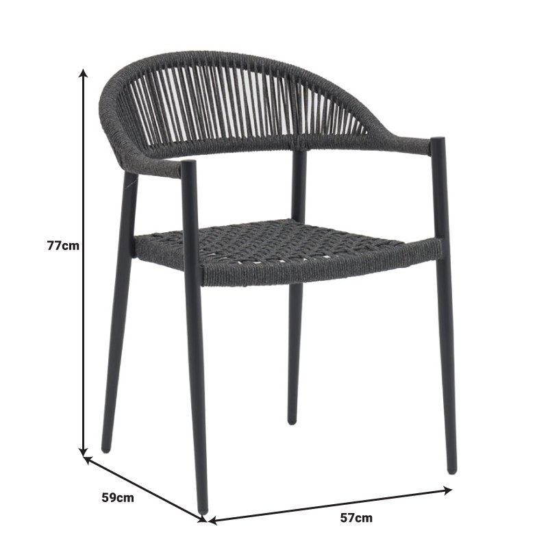 Dining table A set of 7 pakoworld aluminum and rope in anthracite shade 150x80x74cm