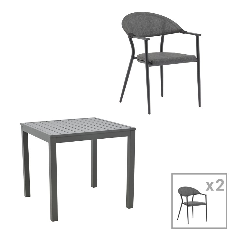 Dining table Kliton-Pino set of 3 aluminum in anthracite and black shade 80x80x74cm
