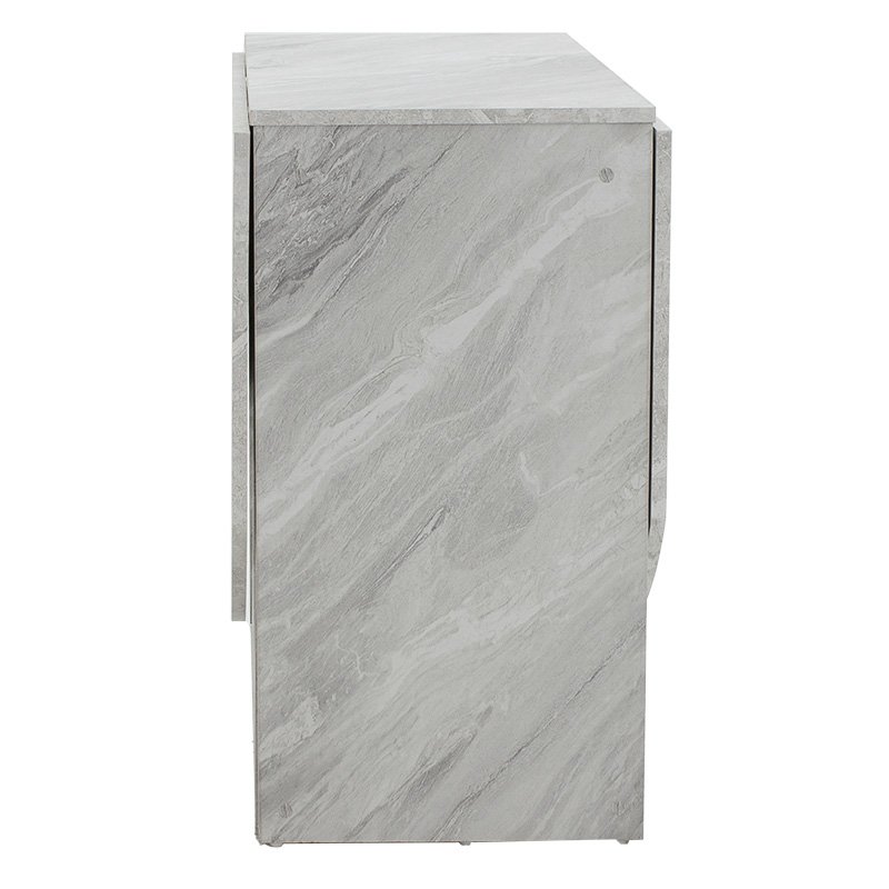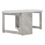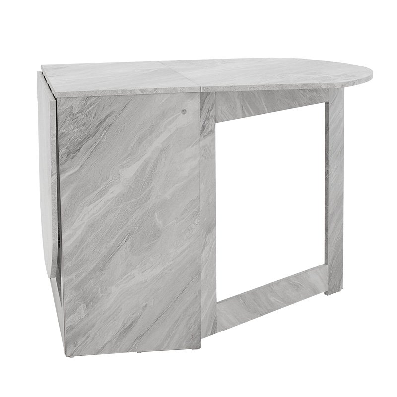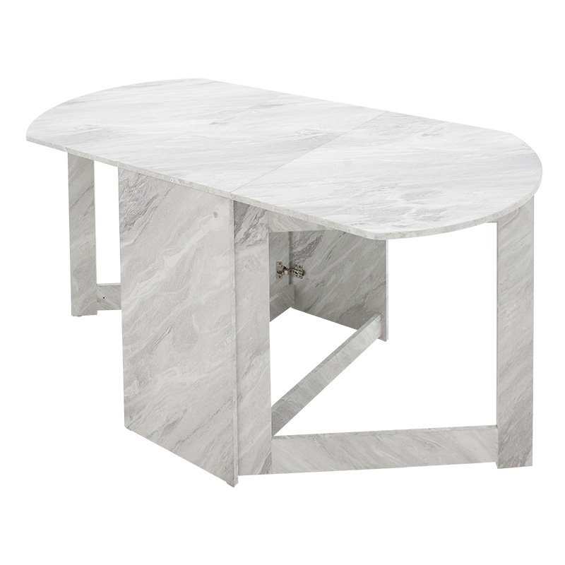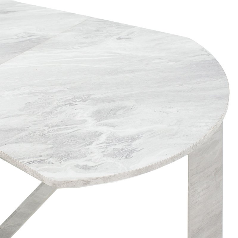 Click Here to download the Product Assembly Instructions.Nadine modeliny polymorphic-expanding white marble table 160x80x76.5cmFor those of you who want to utilize every aspect of your space, the Nadine table with its versatile design is the ideal solution. A flexible and functional construction, which can be used as a central dining room when we want or to collect and grab the least possible storage space.Technical Specifications: Surface and base constructed from high-quality chipboard with melamine coating, ensuring durability over time. Supported by side-opening legs made from chipboard with melamine coating for added stability. Offered in white marble color.Product Dimensions: Length: 43-160 cm. Width: 80 cm. Height: 76.5 cm.Material Information: Melamine (LPB): LPB (Low Pressure Melamine) melamine is a synthetic material widely used in surface treatment of chipboard in furniture and surfaces manufacturing, prized for its durability and easy maintenance. It is applied to substrates like MDF (Medium-density fibreboard) or OSB (Oriented Strand Board) to produce resilient surfaces. Chipboard: Chipboard, also known as particleboard, is a composite wood material made from small wood chips, usually pine or fir, bonded together under high pressure and temperature with resins. It’s extensively used in furniture construction, internal surfaces, and structural applications. Manufactured from recycled materials, it’s resistant to warping, abrasion, and other natural wear.Maintenance Instructions: Melamine (LPB): To remove stains from the surface, use a soft cloth with lukewarm water and mild soap. Gently wipe the surface until the stains are removed. Melamine is sensitive to moisture, so it’s important to protect it from water. Chipboard: For cleaning chipboard, you can use a soft cloth lightly dampened with water and mild detergent. Avoid excessive water usage and ensure the surface is dry after cleaning.Remarks: The product is delivered unassembled, in factory packaging, with detailed assembly instructions. The color shade of the product may slightly differ from its photographic representation on your screen.