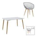 Dining table set of 5 pp-mdf in grey-white color with natural legs 120x80x76cm