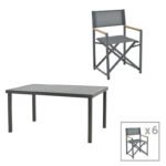 Be the first to review “Dining table set of 7 pakoworld anthracite aluminum and pe rattan in natural shade 150x80x74cm” Cancel reply
