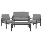 Fashionable living room set of 4 pieces fabric in gray shade and aluminum in anthracite shade