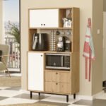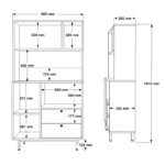It has an ideal size, a practical design and offers you unlimited options for organizing your items.Specifications: Made of high-quality chipboard with melamine coating in a natural-white shade. Support on four black metal legs. It has shelves, cabinets and drawers to store your items. It is offered in the natural-white-black color combination.Product dimensions: Length: 88 cm. Width: 35.5 cm. Height: 161.2 cm.Material information: Melamine: LPB Melamine (Low Pressure Melamine) is a synthetic material widely used in the surface treatment of chipboard in the manufacture of furniture and surfaces, due to its durability and ease of maintenance. It is applied to substrates such as MDF (Medium-density fibreboard) or OSB plywood to produce durable surfaces. Particleboard: Particleboard, known as chipboard, is a composite wood material made from small pieces of wood, usually pine or spruce, glued together under high pressure and temperature using resins. It is widely used in the manufacture of furniture, interior surfaces and structural applications. It is made from recycled materials and is resistant to bends, abrasions and other natural stresses. Metal: Metal is widely used in furniture making, offering a number of advantages over other materials. It is extremely wear-resistant, ideal for furniture intended for daily use in a demanding environment. It maintains its shape and structure perfectly, ensuring stability and longevity to the furniture. In addition to the properties mentioned above, the metal may have other characteristics, such as antimicrobial activity (copper) or superconductivity (molybdenum).Maintenance instructions: Melamine: One of the most well-known materials in the field of furniture is melamine. To remove stains from the surface use a soft cloth with lukewarm water and mild soap. Gently wipe the surface until the stain is removed. Melamine is sensitive to moisture, so it is important to protect it from water. Chipboard: To clean chipboard, you can use a soft cloth lightly dampened with water and mild detergent. Avoid excessive use of water and keep the surface dry after cleaning. Metal: If it’s any indoor metal, a regular dusting or cleaning with a damp cloth is the way to go.Remarks: The product is delivered in factory packaging. The color shade of the product may differ slightly from its photographic representation on your screen.