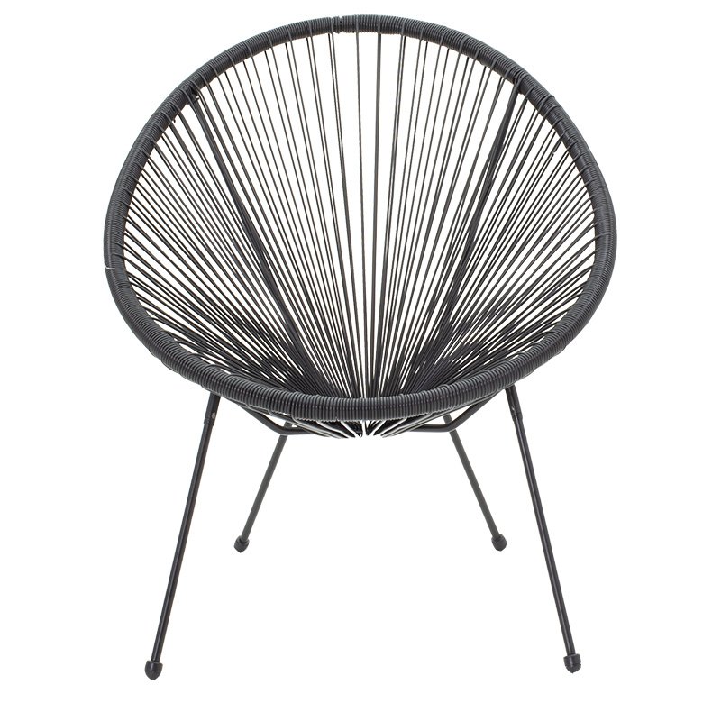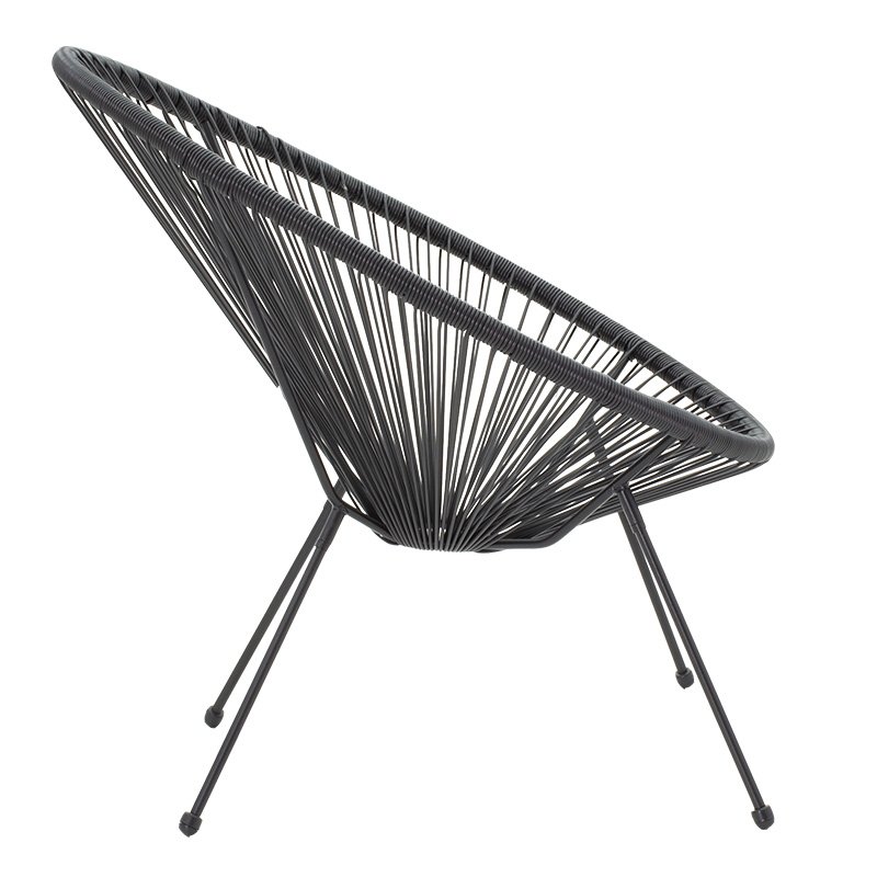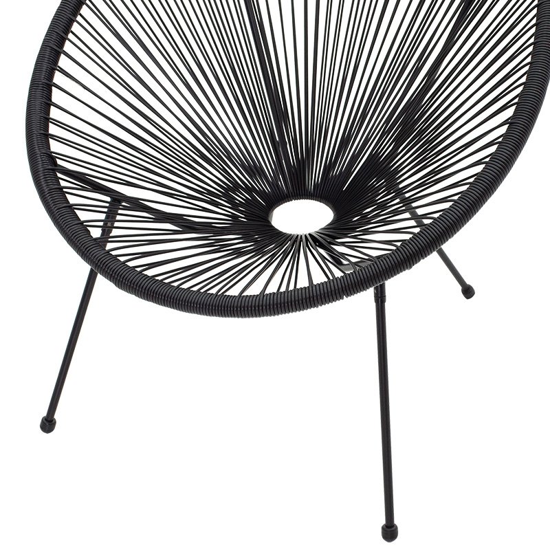 Armchair Acapulco modeliny metal-pe blackDecorate your garden or balcony with the latest trend in modern design! The Acapulco garden chair offers you comfort in the seat but also durability thanks to its excellent quality of construction. Place it on your balcony or in your garden and combine aesthetics with ergonomics.Technical Specifications: Stable metal frame with resistance to stress and wear. Main seat-back body made of excellent quality PE rattan. PE rattan is a type of ecological synthetic rattan, recyclable and more durable than other species. High durability: suitable for outdoor use exposed to weather and humidity. Available in black. Product Dimensions: Length: 72 cm. Width: 77 cm. Height: 85 cm. Headquarters heights: 39 cmMaterial Information: Rattan PE: Rattan PE is a popular material, an imitation of natural rattan, used in the construction of furniture and accessories. It is made from polyethylene, a durable synthetic polymer resin. It is weather-resistant, does not deteriorate from sun or rain, and does not fade, while also being environmentally friendly. Metal: Metal is widely used in furniture construction, offering several advantages over other materials. It is extremely resistant to wear, ideal for furniture intended for daily use in a demanding environment. It maintains its shape and structure perfectly, ensuring stability and longevity. Besides the properties mentioned above, metal can also have other characteristics, such as antimicrobial action (copper) or superconductivity (molybdenum). Maintenance Instructions: PE Rattan: PE Rattan is easy to maintain and clean. It requires simple washing with water and soap. Metal: For any indoor metal, dusting or wiping with a damp cloth regularly is recommended. However, for outdoor metal furniture, follow these steps: For extended protection, apply protective cream, easily available in stores, to your metal furniture. If your furniture is processed and painted with powder-coating, it is very durable and can be cleaned easily with a damp cloth. If your metal furniture is not powder-coated, you need to be more careful and keep it away from water and humidity. You can cover them with special covers and, if possible, place them indoors during winter. If you notice rust, remove it with turpentine, then apply anti-rust varnish before painting the surface with oxidation-resistant paint. Remarks: The product is delivered unassembled, in factory packaging, and with detailed assembly instructions. The color shade of the product may slightly differ from its photographic representation on your screen.