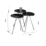 Click Here to download the Product Assembly Instructions.Side tables Weber modeliny set of 3 pieces black marble-goldenIf you are looking for coffee tables to give style to your space or to create original decorative compositions, then Weber are ideal for you. Elegant, simple but at the same time tasteful, they will breathe new life into your space.Technical Specifications: Stable frame made of metal of excellent quality and mainly chipboard surface with melamine coating resistant to wear and time. The round shape on the surface will give new life to your decoration. They have plastic protectors on the legs to protect the floor from unwanted damage. They are offered in black color with marble imitation around the perimeter has a golden band PVC and legs in golden color. Unique shade of marble: variations in the color tone of the waters may be observed in relation to the photographic representation of the product.Product Dimensions: Dimensions of a large table: 34x34x55cm high. Dimensions of the middle table: 34x34x51cm high. Small table dimensions: 34x34x47cm high.Material Information: Chipboard: Chipboard is a composite wood material made from small wood particles, typically pine or fir, bonded together under high pressure and temperature using resins. It is widely used in furniture making, interior surfaces, and structural applications. Made from recycled materials, it is resistant to bending, abrasion, and other physical stresses. Melamine (LPB): Low Pressure Melamine (LPB) is a synthetic material widely used for surface treatment of chipboard in furniture and surface construction due to its durability and ease of maintenance. It is applied to substrates such as MDF (Medium-Density Fibreboard) or OSB (Oriented Strand Board) to produce durable surfaces. PVC: PVC (Polyvinyl Chloride) is a polymer plastic. It is resistant to various conditions, including moisture, chemical corrosion, and abrasion. This durability makes it suitable for both outdoor and indoor applications. PVC is recyclable and can be reused to produce new products, reducing environmental impact. Metal: Metal is widely used in furniture construction, offering several advantages over other materials. It is extremely resistant to wear, ideal for furniture intended for daily use in a demanding environment. It maintains its shape and structure perfectly, ensuring stability and longevity. Besides the properties mentioned above, metal can also have other characteristics, such as antimicrobial action (copper) or superconductivity (molybdenum). Maintenance Instructions: Chipboard: For cleaning chipboard, use a soft cloth slightly dampened with water and mild detergent. Avoid excessive use of water and keep the surface dry after cleaning. Melamine (LPB): To remove stains from the surface, use a soft cloth with lukewarm water and mild soap. Gently wipe the surface until the stain is removed. Melamine is sensitive to moisture, so it is important to protect it from water. PVC: For its maintenance, use a soft cloth or sponge lightly soaked in mild detergent and warm water. Gently wipe the cloth over the surface of the PVC, cleaning the area with light pressure. Avoid using strong solvents or chemicals as they may cause damage. Metal: For any indoor metal, dusting or wiping with a damp cloth regularly is recommended. However, for outdoor metal furniture, follow these steps: For extended protection, apply protective cream, easily available in stores, to your metal furniture. If your furniture is processed and painted with powder-coating, it is very durable and can be cleaned easily with a damp cloth. If your metal furniture is not powder-coated, you need to be more careful and keep it away from water and humidity. You can cover them with special covers and, if possible, place them indoors during winter. If you notice rust, remove it with turpentine, then apply anti-rust varnish before painting the surface with oxidation-resistant paint. Remarks: The product is delivered unassembled, in factory packaging, with a detailed assembly guide. The color shade of the product may slightly differ from the photographic representation on your screen.
