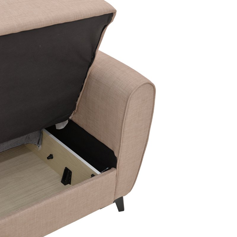 Sofa-bed with storage two-seater beige fabric 165x85x90cm