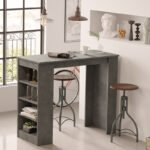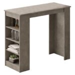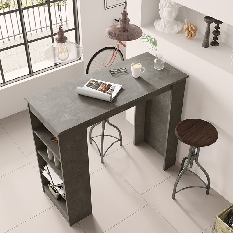 Bar table Riff modeliny anthracite antique 120×51.5×101.5cmAre you looking for a table for your kitchen or dining room that will impress with its simple yet elegant design? Riff is perfect for you!An impressive decoration proposal, ideal for the home or office that will creatively renew the aesthetics of your space.Specifications:* Stable frame made of excellent quality chipboard with melamine coating with resistance to wear and time.* Features four shelves of auxiliary storage.* Can be used as a bar table or reception console. Dimension:Length: 120 cm.Width: 51.5 cm.Height: 101.5 cm.Remarks:The product is delivered unassembled, in factory packaging and with a detailed assembly guide.The color shade of the product may differ slightly from its photographic representation on your screen